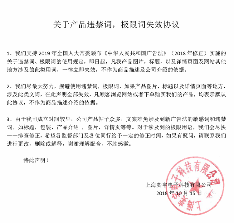 查看詳情>>關于產品違禁詞,極限詞失效協議